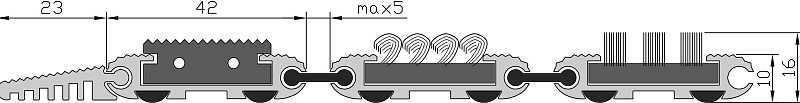 Специальные резиновые вставки снизу профиля обеспечивают антискольжение и предотвращают смещение, также имеют шумопоглощающий эффект.