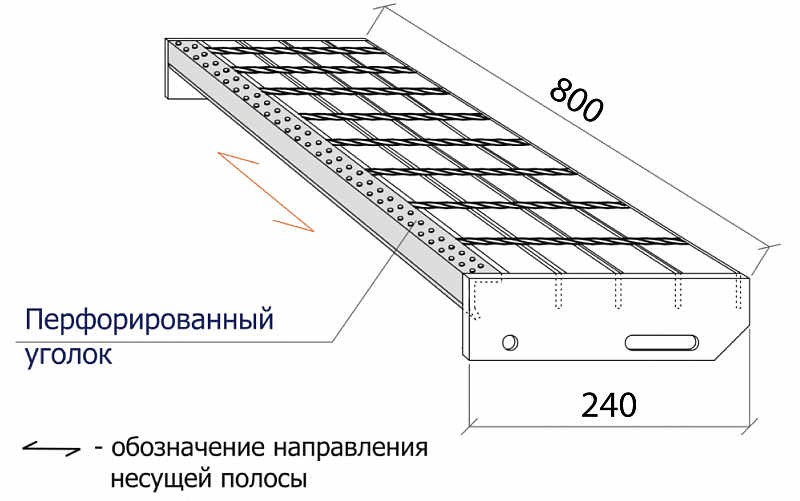 Металлические ступени для лестниц из решетчатого настила